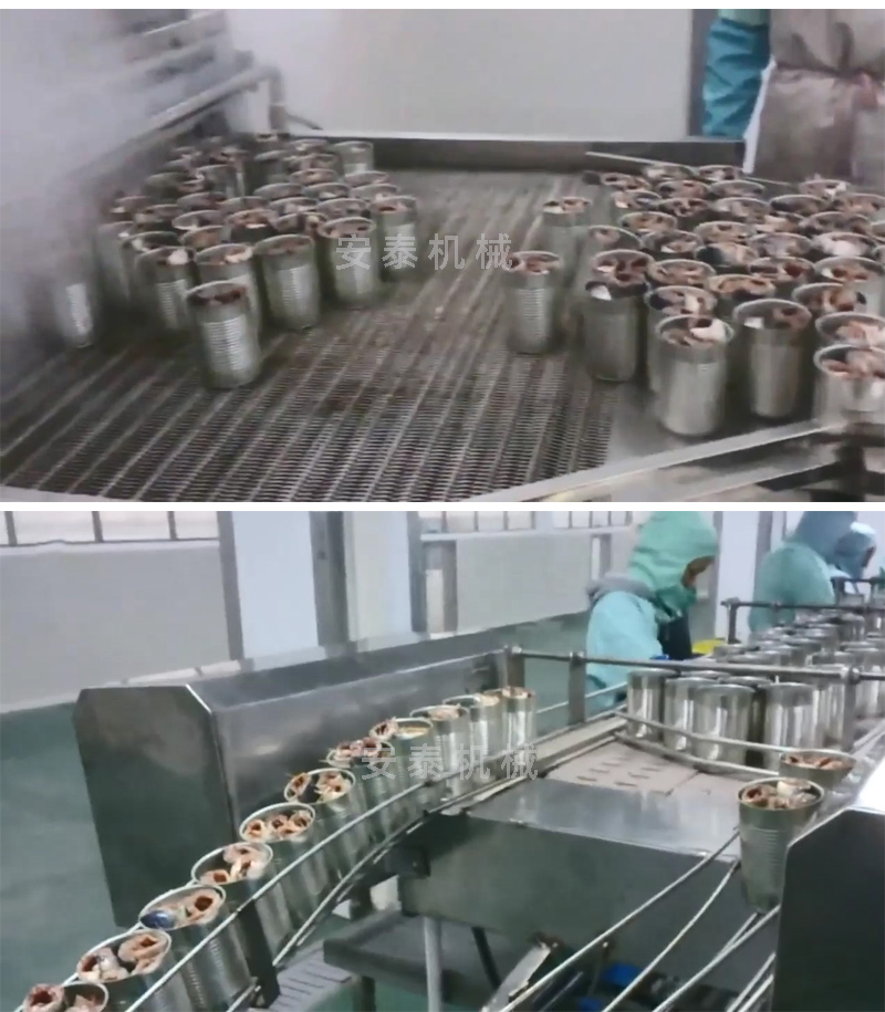 解凍——切斷——清洗——裝罐——蒸煮——加湯汁——真空封罐——高溫殺菌——裝卸籠——實罐清洗——吹干——貼標——裝箱——碼垛